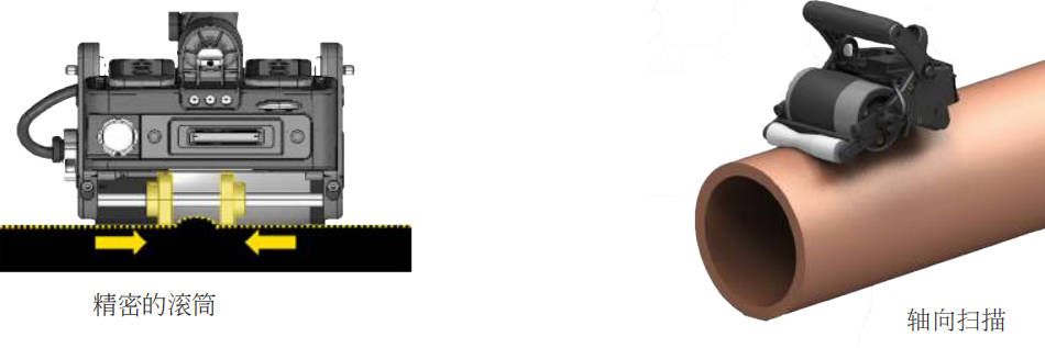 • 精密滾筒(輕便小巧)易于適應于不規則表面(焊冒),并且在彎曲的工件上易于控制掃描方向